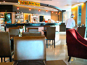 写真のように炒飯、ソーセージ、ベーコン、ポテト、ハムと、後は飲み物を適当に選んで和洋折衷の朝食となりました。味はなかなか良かったです。炒飯はタイ特有の香りが若干付いていました。周辺を見ると、思ったより外人さんの宿泊が多いようでした。