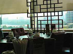 さて案内された席は窓からちょっと離れていて残念ですが、良い景色の雰囲気は少しだけ味わえました。